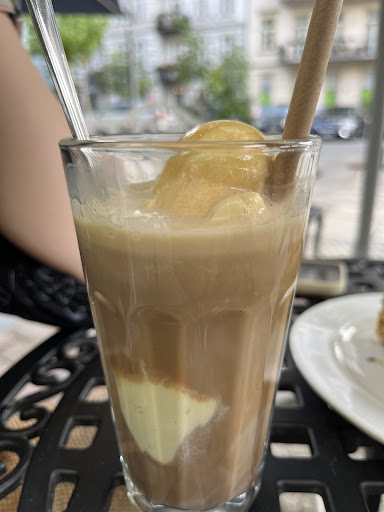 I’m a big fan of Spaghetti Eis so I had to visit this place first the moment I arrived in Berlin (due to its high praise). The Spaghetti Eis worths it, it is nearly on par with my local Gelato shop in Offenbach (which I believe is the best in Germany). Would be a bit better if it has some kind of fruits (like banana) with it. Also the presentation needs a bit more refinement, not gonna lie it was kinda messy. Nonetheless the taste was great. Ice coffee and carrot cake...