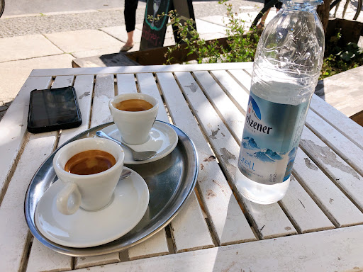 Read moreWe were with our bikes all day, so we decided to take a look at Mauer Park. We left our bikes parked in front of this ice cream-coffee shop. Before entering the park, we decided to buy some water and 2 expressos. They were good! We sat on a table outside while we rest our tired legs for a while. The only thing is (as many places), only cash.