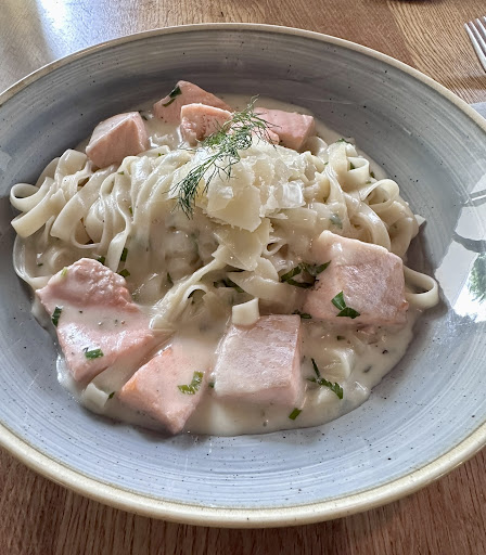 Read moreWir (drei Gäste) wurden freundlich von den Mitarbeitern in dem gemütlichen Restaurant begrüßt. Wir hatten vorab einen Tisch reserviert, was sich später als sinnvoll herausgestellt hat. Leider hat es ziemlich lange gedauert, bis wir die Karten erhalten haben, sodass wir nach einer gewissen Zeit selbst danach gefragt haben. Ich muss dazu sagen, dass es zu dem Zeitpunkt noch nicht allzu voll war. Wir haben in der Karte schnell die passenden Getränke und Speisen gefunden. Alles hört sich verlockend an. Im Endeffekt hatten wir drei Burger, Tee und Erdbeerschorle. Es hat wieder länger gedauert bis wir die Speisen erhalten haben. Das Essen sah ansprechend aus und war auch lecker. Allerdings ist es nach unser aller Empfinden viel zu teuer, etwas klein, die Burger-Buns waren zu trocken und insgesamt hat uns dieser nicht überzeugt. Die Getränke waren dafür sehr lecker. Anschließend bestellten wir noch Nachtisch - eine heiße Schokolade, Pflaumen-Crumble und Tiramisu. Von diesen Gericht hat leider nur eins überzeugt und zwar das Tiramisu. Die Schokolade war wässrig und lauwarm und es wurde Apfelcrumble gereicht. Im Endeffekt haben wir es behalten, doch wir hatten etwas anderes bestellt.