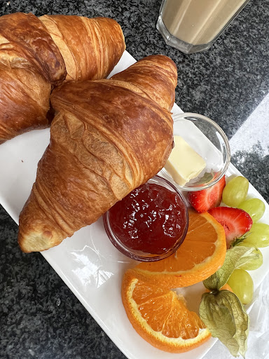 Prices are great, 2 large lattes ☕️ with lactose free milk, 2 croissants with jam and butter and some fruits 🍇 cost us €14 euros. Totally worth it and...