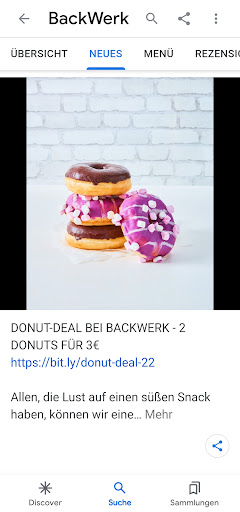 Read moreNull Sterne. Ein Stern ist zuviel, aber weniger kann man nicht eingeben. Am 13.8.23 um 18.13Uhr Bahnhof Ostkreuz. Wollte Getränkedose kaufen und eine leere abgeben. Antwort: die leere Dose ist nicht im Sortiment, die nehme ich nicht. Was ist dann eigentlich der Sinn von dem Pfandsystem - das ich wieder zurück nach Rheinsberg fahre und die Dose dort abgebe? Wie versteht Backwerk das Pfandsystem? Ich habe natürlich den Kauf abgebrochen und gegenüber ein Getränk gekauft. Die haben nur Plastikflaschen und die Metalldose trotzdem angenommen. Pfand ist Pfand - sehr vorbildlich, werde das dort in deren Bewertung vermerken. Oder ist die Backwerk-Mitarbeiterin einfach nur zu bequem, das Pfand extra abrechnen zu müssen. Ich verwende hier mit Absicht nicht das Wort Faul. Ich bin seit 27 Jahren selbstständiger Elektromeister und für mich sieht Kundendienst, also Dienst am Kunden, ganz ganz anders aus. Geschweige denn guter Kundendienst, den bekommt man nicht hin, wenn noch nicht einmal einfacher Kundendienst bewältigt wird. Gottlob gibt es genug andere Geschäfte, wo die gleichen Sachen verkauft werden.