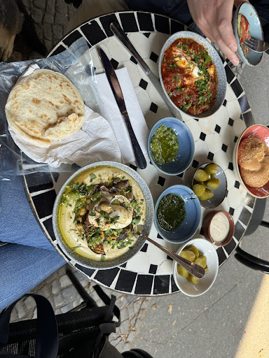 Due to the many hymns of praise in the other reviews, I had expected a pastry that would catapult me taste-wise into nirvana. Unfortunately, this was not the case. Whether you call it Babka or Rugelach, Hummus or Shashuka, all were quite bad and really not well made. Craftsmanship: A real embarrassment. Now there is in particular for this pastry since a few years a super offer in Berlin from various other more innovative Israeli bakeries to even pastry shops. The babkas and rugelach there are not as compact and with lots of poppy seeds and sugar as at Balaboosta, but fluffy and light. They do not skimp on the ingredients (e.g. nuts). The Babka and Rugelach are also at least twice as large at the same price. In addition, the hummus as well as the shashuka there is not watery but very creamy in consistency. At the same time, Balaboosta completely lacks flavor. Spices or the right spices are spared here. The eggs are completely overcooked.