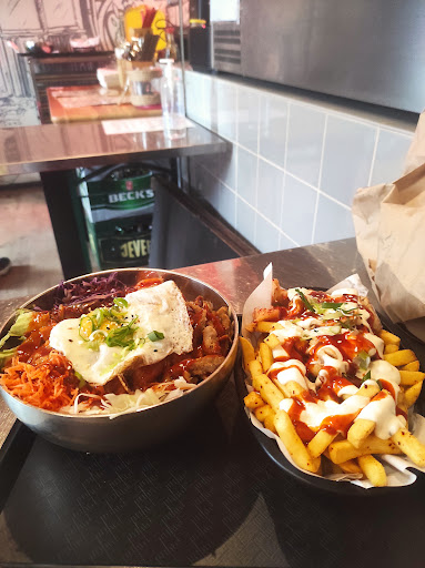 Read moreFull of hipsters who obviously have never tried Korean food, because the food here is not Korean. Overpriced, stingy on the meat (5,50⏠for some defrosted fries with some crumbs of meat as a decoration). The so-called Kim chi is actually Kim chi flavored sauerkraut and you have to wait for ages because it's full of German hipsters trying to order in English because they think it's cool. The staff seems really friendly sometimes, so I'll give it more than zero stars. The second star is because I'm impressed with the fact they managed to attract tons of rich hipsters by placing some Asian styled cartoons on a box, adding msg to Turkish/American food and selling it as "Korean soul food". Wouldn't be surprised if I find a place selling original Delhi...