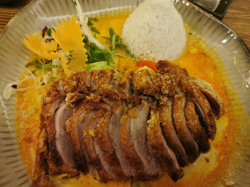 A nice ambiant authentic Vietnamese restaurant in Charlottenburg, I decided to give it a try. I love the decor inside and the lights, it gave such warm vibes. We were seated quickly and served the menus. We ordered Miso sake Suppe and a sushi platter to share as an appetizer, along with lychee smoothie and Moscow mule. I asked the waitress if it's possible to switch the tables, since I felt ours was very close to the street, she was very friendly and accommodated our needs. We ordered spicy red thai curry with duck, which is my absolute favorite and special teriyaki chicken with vegetables and rice. The food was really good when compared to the prices, however nothing exceptional. My overall rating is as follows Drinks 3/5 Thai curry duck 5/5 Sushi 4/5 Teriyaki Chicken 4/5 Service 4/5 Ambiance 5/5