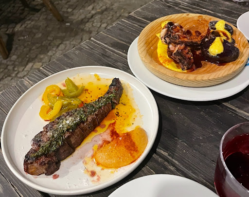 Read moreOk, so: croquetas, alioli, the meat from the photo - that all was good. Octopus was not my taste. What I did not like is the size of the plates in comparation to prices. I mean, I know is tapas bar, but I thought that if one tapas cost around 15€, it will be bigger than just for few bites. We first ordered 2 glasses of tinto de verano but the waitress proposed us 1l jar, which we accepted because we thought that usually one glass in 200/250ml, therefore it will be 4/5 glasses, max 15€ then (1 glass is sth around 3€). But the glasses were very small and and the end this jar of tinto de verano was sth around 25€. In my opinion it’s too big price for it (as it is wine mixed with some other drinks). We left hungry and we paid much more than usually we pay...