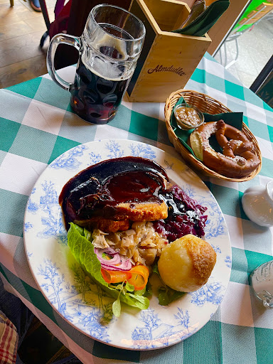 I never write Google reviews, but the treatment we received here was outrageous. We are American and one of us has very olive-toned skin. I asked (in German) for a table for 4 and we were told we could only be seated with a reservation... but also could not be seated at all because a table of 60 (?!?) people were on their way. This sounded like a lie because the restaurant was half-full already, so I walked outside and made a reservation on Google. We walked back in, showed the reservation to a female bartender who seemed nice, and then a man whom I believe to be a manager walked up next to the first employee who had lied to us and said in an annoyed tone, "You're back," and sucked his teeth at us. I showed him the reservation and he EXTREMELY RELUCTANTLY said "fine, you can sit in the corner." We were sullenly escorted to a corner, past many open tables. When he approached with menus we asked him to explain why we had been turned away when the restaurant could clearly not seat a party of 60. He responded that they did have a large party (it did not sound convincing), but also explained that they were the overflow restaurant for their sister restaurant around the corner (which had a long line outside when we passed) and had to keep tables empty in case anyone needed to come there, despite paying customers asking for a table right in front of him. This explanation made even less sense than the previous excuse, so we said "you know it sounds like you didn't want to seat us, right?" And he DOUBLED-DOWN, saying "Well, I did show you respect because I have seated you after all " ...WHAT??!?!? With that, we told him we were leaving. I have never been lied to like this or treated so badly at a restaurant and I believe it is because we are not native German speakers, or it was racism, though neither of these employees were ethnically German. It is very strange to encounter such gatekeeping at an apparent "tourist trap" that other reviews have said has terrible food. I am writing this review so hopefully others see it and avoid this place. I blame the owner, who apparently condones this behavior- You should go out of business!...