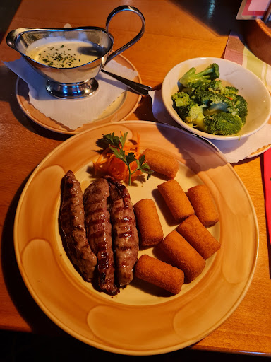 Tough call, used to be one of my fav. places but quality seems to be a bit unstable. We asked for the steak to be served on a hot iron plate to arrive hot - First side eye by the waiter. It arrived cold, we asked the waiter to have it heated up for a minute, second side eye. We ordered the liver side, he brought the main dish, another unnerved look by the waiter who then proceeded to leave our table deserted for the rest of the evening. The worst is we could hear him snickering to his colleagues about us in German, which we understood. We ended up tipping the kind waitress but left feeling a bit irritated. This place used to excel, once a rib eye medium - well done came bloodied and they replaced it and apologized. I guess these...
