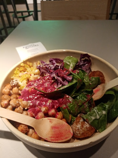 Read morei do not understand the negative reviews at all. I‘m going there frequently and the food is always really fresh and delicious. They add new bowls to try every other month aswell!! The whole staff but especially that one guy with the beard who works there almost every single day are really friendly and funny!! Since he’s working there the store improved so much. It used to be a little messy sometimes but now everything is so clean! And they even have brownies and cakes now too, with vegan options (which I love!!)🫶🏻