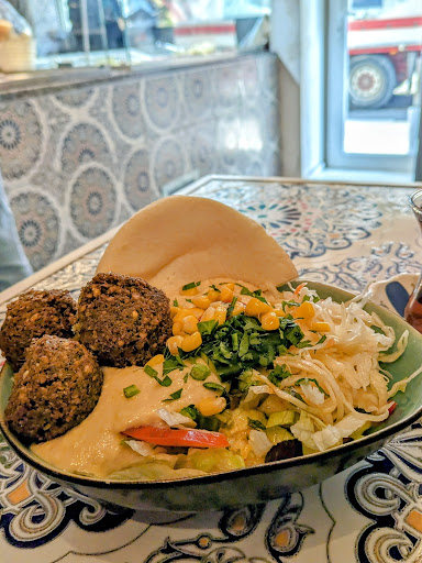 Read moreYou don’t miss non vegetarian food here ! And the family who run it are such polite and happy people. 🧡 I love the Besh bowl with all the other ingredients. My friend loved the falafel bowl. I also absolutely love the vegan sweet. Nimura is what I think it is called. You also get free tea with your order. The interior is so thoughtfully put together. The white and the colours and the soft music have all been blended so beautifully for a place so small. Good fresh light food and such kind service. Kudos...