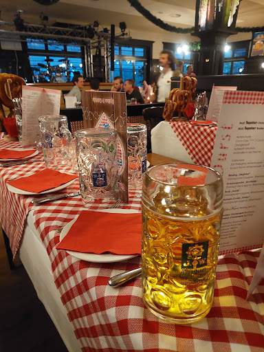 Read moreEine absolute Empfehlung für Feiern oder auch zum Spaß haben bei Events wie in unserem Fall das Oktoberfestes. Die Stimmung war der Kracher. Das gesamte Personal ist super aufeinander abgestimmt und absolut schnell, wir mussten auf nichts, wirklich gar nichts, warten. Selbst als die bayrische Liveband gespielt hatte und die Gäste buchstäblich auf den Tischen getanzt haben hatte das Team alles fest in Griff. Trotz diesem Kraftakts waren auch immer alles freundlich und manche Kellnerin oder Kellner avancierte noch zusätzlich zum Animateur und hat kräftig mit getanzt und die typischen "Wiesn' Lieder" aus vollem Hals mit gesunden. Da wir eine Gruppe waren haben wir natürlich eine im Vorfeld angesprochene Speisenkarte gehabt was der Qualität der Mahlzeit kein Abbruch getan hatte. Begrüßt würde man mit frischen und wirklich guten 'großen Brezn' und natürlich einer 'Maß' . Kurz darauf folgte für alle sich im Festsaal befindlichen Tische herzhafte 'Brotzeitplatten' mit allerlei typischen Wurst - und Käsespezialitäten sowie 'Obazter' und Bauernbrot mit Schnittlauch. Nach weiteren Bieren und den eingängigen sehr gut performten Lieder der 6-Köpfigen Band kamen dann die eigentlichen Hauptspeisen. Man hat natürlich die wahlzaus den bekanntesten Gerichten wie 'Leberkaas' ,'Käsespätzle' ,'Schnitzel' ,'Hähndel' usw. Ich hatte das 'Hähndel' und war auch hier begeistert, Würzig-saftiges Fleisch unter knuspriger Haut mit Kartoffel-Gurkensalat ein Genuss wie es auch vermuten ließ. Die Location besitzt natürlich auch ein Außenanlage mit vielen kleinen netten Sitzplätzen auf hellem Kies und Blick auf den Schlachtensee. Zu guter Letzt kann ich noch die sehr gut sauber gehaltenen Toiletten hervorheben welche auch dauerhaft über dem dortigen 'Oktoberfest' gepflegt wurden. Wir waren rundum begeistert und ich komme bestimmt wieder. Vielen...