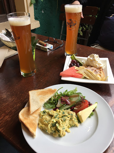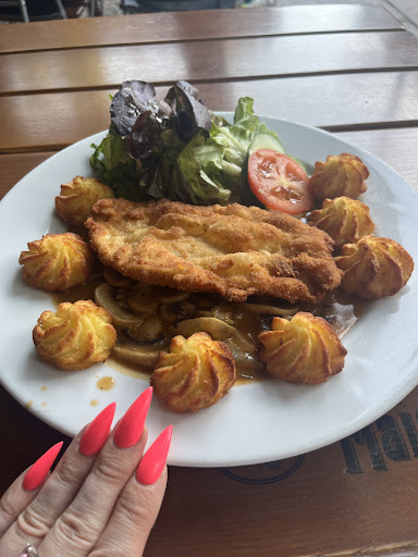 Don't come here if you are a 5 people group with one elder. They don't have tables with normal chairs for more than 4 people, so we had to sit on the benches, which was fine, but when we added a normal chair for our grandpa to sit (the bench is not safe and comfortable for elders), the waitress complained that the added chair and the wheelchair blocked her way. (Why couldn't she just go around?) And then she complained that the guests behind us left because our father was smoking a cigar. But I actually heard the guests behind us left because of the waitress' bad attitude. If we were surrounded by people, I could totally understand not to smoke. But we were sitting outside when very few people around us. Plus, the waitress was smoking too. I couldn't help but think we were not welcome because we were not "convenient"...