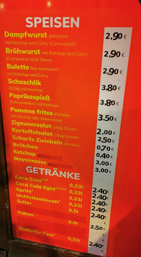 Neue türkische Betreiber, die im Gegensatz zu vor Corona die Inflation nutzen, um teure Mondpreise zu nehmen! 2,90 die Curry kommt in Berlin heutzutage schon mal vor, ist aber eindeutig zu teuer! Sie kostete vor 1 Jahr noch 2 Eu! Das eigentlich preisgünstige Schweinefleisch ist nicht so viel teurer geworden im Einkauf! Man ist ja dann schließlich bei fast sechs Mark für eine einfache Schweinefleischwurst! Die Krönung sind die Pommes! 3,50 EU, das sind schließlich ehemalige 7 D-Mark (!) Ist viel zu teuer und selten an Berliner Imbissen zu finden! Vor der Inflation kosteten die Pommes 1,80 (ohne Ketchup)! noch verrückter wurde es bei Zigeu-Salat! Der war bei der Bratwurst mit 2,50 € dabei oder kostete einzeln 50 Cent, jetzt will der neue Betreiber satte 2 Euro dafür haben. Und als ich das meiste dort getestet hatte, von Currywurst bis Boulette war ich schwer enttäuscht vom verdünnten , also sparsamen Ketchup! Diese Bude, als sie noch Maximilian hieß oder auch Krasselts war in Berlin eine der besten! jetzt ist sie leider eine der schlechtesten. Ich hoffe, die Betreiber gehen preislich runter und verbessern die Ketchup Qualität, die Currywurst selber war okay. Sie wird wohl noch von der alten Maximilian Fleischerei gewesen sein, aber was nützt eine gute Currywurst, wenn der Ketchup verdünnt ist und wenig Geschmack hat? SEHR...