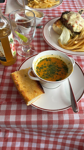 Read moreA place where a lot of people were eating, and a sign with "Best steaks since 19xx", so the expectations were high, at least for the steak, especially as a steak enjoyer myself. I ordered a Rib Eye Mastercut medium rare, a very nice piece of meat, but i was served a well done rib eye, which in my opinion is quite sad for such a fine cut. Me and my girlfriends waiter Daniel didn't come and ask if everything was fine (understandable since the restaurant was quite full), but a nice waiter stopped since he could see i wasn't eating much more of my steak. He quickly agreed with me and offered me a new steak and a Bruschetta while i waited - free desert or a bit off the price would have been fine, especially considering the price of the cut. Not soon after Daniel was at my table with the steak and asked me to come inside so I could see the beef in the light, he pointed out the steak was medium rare because u could see a glimpse og red in the middle. Maybe it wasn't well done, but it was closer to that than medium rare. Daniel told me to eat my beef and that i should be satisfied with the way it was cooked, I'm not much of an arguing guy and rarely complains. Shy of conflicts as I am it went Daniels way, and i paid the full price.