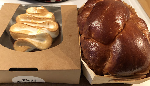 Read moreWell there’s a new player in town and it’s out to win! With its austere tasteful Minimalistic Approach it Transcends the traditional Hood. Clean Clear Concise Concepts ring true throughout. The Windows invite one to Peruse. Then enter and Satisfy one’s desire for Perfection. Flaky Croissants Layered yet Light. Floating Seemingly, Set piled high and Abundant. Then I saw a mini brioche like Loaf that Screamed French Toast. Divine! But before I left there was Lemon Meringue Tarts that are my ‘Kryptonite’ ) (rip Christopher Reeves) In these I Trust! The Meringue Design was appealing enough, But the tart itself was nothing Less than Stupendous. The ‘Tartness’ of the lemon balanced by the Crispy Crackly Crust and topped By Cloud like Meringue Gave my Great Granny ‘Life’ Again as her expertise lingered on my tongue. To say I’m enthusiastic is warranted. And maybe Soon i may be...