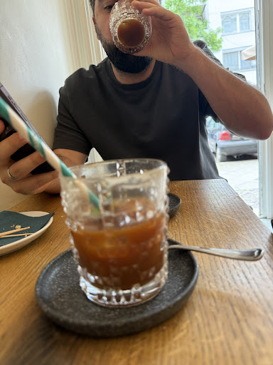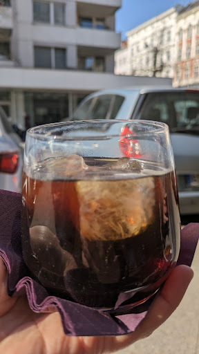 First to the Coffee. I got a cold brew which was previously prepared and stored, thus it also tasted like that. Not very fresh but rather watery. I tried some of my friends cappuccino, with their special beans and that on the other hand was amazing. Very good in taste, a nice proportion on the espresso/milk ratio. Phenomenal, and the specific taste of the beans really comes through. Food was ok, I had a simple croissant. It felt apart pretty easily on the outside, so there was a lacking crunchiness, but the inner dough was fine and juicy. Wouldn't say it's the best I've had in Berlin tho.