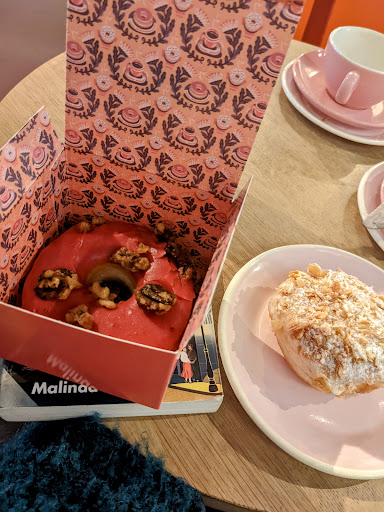 I had the beinenstich doughnut which had crunchy caramelised almonds on top and a thick vanilla cream/custard inside, which was rich and silky. The dough itself was light and was not greasy at all like some doughnuts can be. I have not tried the cranberry-walnut doughnut yet.