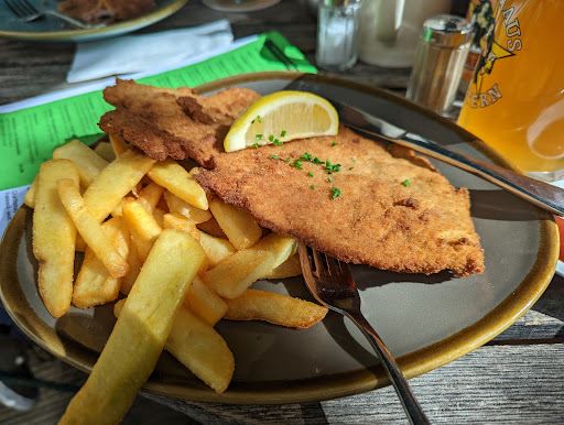 Read moreDa wir zu 8 waren, haben wir rechtzeitig im Vorfeld telefonisch reserviert. Doch als erstes wurde die Tischreservierung verschlampt, so dass wir nach 10 Minuten warten erst mitten im Raum platziert wurden, um dann weitere 10 Minuten später mit der Knallerbegründung der Nachbartisch will tanzen, noch mal umgesetzt zu werden. Kein guter Start. Und getanzt auch niemand. Gab zwar einen Schnaps auf das Haus, aber das konnte dann auch nichts mehr reißen, denn nach weiterem sehr langen Warten an kahlen, lustlos zusammengewürfelten und ungedeckten Tischen, war das Essen lauwarm (bzw. die Beilage sogar eiskalt). Etliche Essen waren vertauscht, bzw. gänzlich falsch und mussten dann nochmals bestellt werden. Wir saßen so gedrängt und eng, dass meinem Tischnachbarn sogar beim Schnitzel schneiden der Teller vom Tisch geklappt ist. Eine Katastrophe. Dazu laut, innen ungemütlich und null weihnachtlich (bis auf die Minispeisekarte). Die Bedienungen waren sichtbar keine ausgebildeten Servierkräfte, zwar freundlich, aber vollkommen überfordert und zum Bezahlen musste man dann noch anstehen an der Kasse. Für das Gebotene ein absolut überzogenes, teures Preisniveau. Insgesamt vermittelt der Laden so den Flair einer Tourifalle. Als Berliner kommt man sich da verschaukeln vor. Dabei gab es schon nur eine sehr kurze Weihnachtsspeisekarte mit einer handvoll an Gerichten (was ja eigentlich ein Qualitätsmerkmal ist). Doch wer nicht einmal knappe 10 Gerichte richtig kann, sollte es sein lassen. 1 Trostpunkt, dafür dass das Bier einigermaßen schmeckt,...