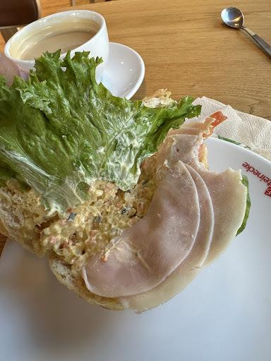 Read moreThe employees were very friendly. There are a lot of options for snacks. Several kinds of sandwiches 🥪, sweeties🧁 and bread 🍞. The place is quite busy during the morning, at least Saturdays. But most the of the customers take the orders away. There are tables outside and inside. Inside it is pretty cosy and comfortable, worth it if you wanna stay and take a breakfast. I ordered milkcoffee🥛☕ and ham sandwich, both were pretty good. The prices are ok, not expensive...