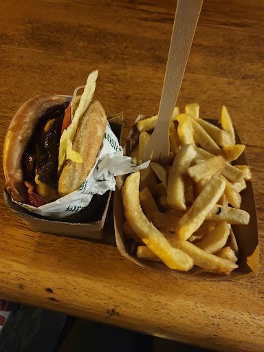 Just a bit disappointed that the food is more expensive when preordering for pickup. The cheeseburger costs €5.60 instead of €4.90 on-site. Please note that I preordered through their in-house ordering system on their website, not through third parties. But no biggie, fortunately, I live nearby. However, it would be handy during peak times.