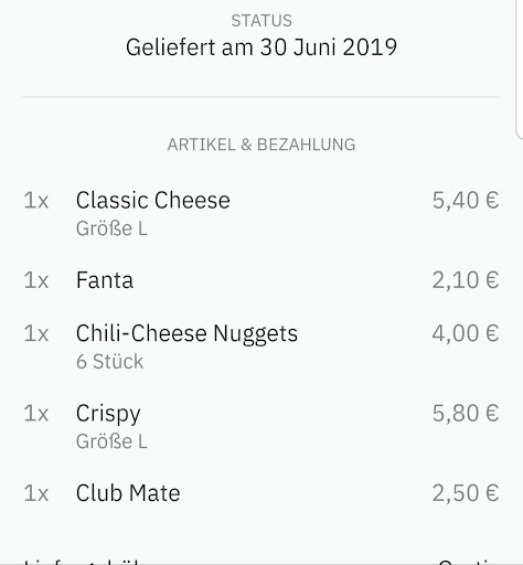 Read moreIch habe heute am 16.07.2021 mit meinen Kollegen zusammen Essen bestellt. Auch alles über Lieferando bezogen und bezahlt. Nun hieß es warten und warten. Leider habe ich erst später die anderen Bewertungen gelesen, was ich hätte doch tun sollen. Jedoch war dann die erste Stunde herum und wir riefen ca. 15 Minuten später im Geschäft an. Da hieß es: Es sind noch 05- 10 Minuten, die wir warten müssten. Nun war ich beschäftigt und vergaß die Zeit und wir riefen wieder ca. 20 Minuten später an. Da hieß es, er ist gleich da. Man solle doch Verständnis haben. Nach dem Anruf, ca. 15 Minuten später, dann der Besuch mit dem Essen im Gepäck.