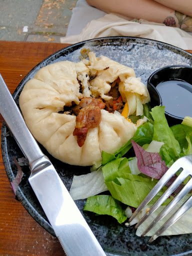 Read moreSich "vegan" hinter seinen Namen zu schreiben und dann von 30 Gerichten nur fünf vegane Gerichte ausschließlich mit Nudeln anzubieten ist schon ein Grund, schlecht zu bewerten. Dass man dann als Kunde nachfragen muss, was von den Vorspeisen vegan ist (weil nur bei manchen "vegetarisch" aber nicht einmal "vegan" hinter einem Essen steht) und noch dabei ist, die Vorspeisen zu essen, während bereits der Hauptgang gebracht wird, nervt. Vor allem, wenn der Mitarbeiter das Essen einfach auf den Tisch stellen will und es kalt wird. Wir baten ihn, das Essen wieder mit zu nehmen, was er auch tat. Das war wahrscheinlich der Grund, warum dann das Essen (Gemüse, Tofu, Nudeln) total labberig war. Die gebratenen Udon-Nudeln waren außerdem leider sehr fettig. Das Erdnuss-Kokosmilch-Gericht war unerträglich süß und ungenießbar, so aß ich nur das total weiche Gemüse heraus. Irgendwann hat man dann auch einfach keine Lust mehr, nachdem die Bestellung so kompliziert war, weil nur eine Person uns verstand, als wir uns nach den veganen Gerichten erkundigt hatten und die Hauptgerichte so früh kamen. Auf die Kritik, was die unglaubliche Süße betraf, reagierte die Kellnerin ausgesprochen gut und professionell (sie hatte inzwischen selbst probiert und bestätigte die abartige Süße) und bat Ersatz an. Wir lehnten ab und baten um die Rechnung. Ebenso professionell dann, das fast vollständig zurückgegangene Essen nicht zu berechnen. Leider dennoch für uns weder wiederholens- und für Veganer nicht wirklich...