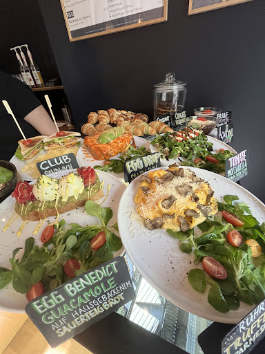 Read moreWe have been to this cafe twice during our Berlin trip. Once had only coffee and smoothies which were good. We sat outside. Then we decided to come back for the food and chose a table inside. The cafe has a nice interior, clean toilets, comfortable seating. Was good to see two groups of students with laptops working on projects or a coursework - good to see the cafe supporting youth in their studies and allowing them to use the space. Unfortunately the food was not to our liking. The eggs were tasty - you can tell they are of good quality. But the bread that goes with omelette/egg dishes was bland and it was only one piece, not very filling. we were glad we also ordered something else. We had salad bowls, one with salmon and one with chicken fillet. They come covered in very sweet and somewhat artificially tasting sauces that overwhelmed the salad leaves...