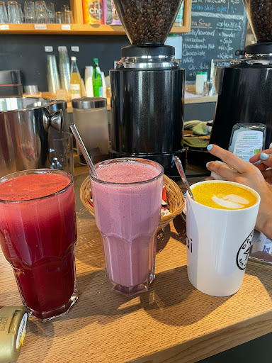 We got the salami and vegetarian sandwich, both were very good and freshly toasted for us. We got the mixed berry smoothie , a carrot juice and a turmeric latte, all were good but the turmeric latte was very strong , so much so that it tasted bitter.