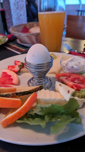 Das Essen dauerte etwas, aber nicht unangenehm lang. Die Auswahl ist sehr überschaubar, die Karte sollte man sich vorab auf jeden Fall anschauen. Ich hatte das Rührei mit Tomate und Hirtenkäse und fand es qualitativ gut. Auch die Menge war OK.