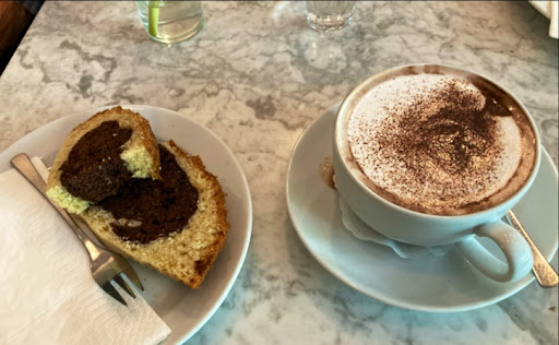Read moreKleines, feines Café mit selbstgemachtem Kuchen und leckeren Kaffeevariationen. Ich hatte einen Schokoladenkuchen mit Beerenschicht und einen Cafe au lait. Der Kellner war schnell und höflich. Meiner Meinung nach hätte der Kuchen etwas mehr Süße vertragen können, aber das ist Geschmackssache. Das Ambiente ist schlicht aber wir haben uns hier 2 Stunden mit einer Freundin unterhalten und die Zeit nicht gemerkt. Wenn der Frühling wieder kommt, kann man auch draußen sitzen - für Hartgesottene stehen schon jetzt Tische und Stühle...
