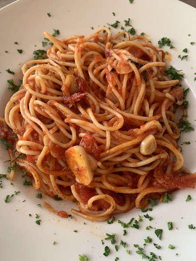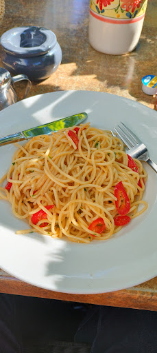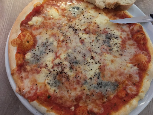 Die Pizzen waren einfach mies; ich könnte mir realistisch vorstellen, dass das ein Tiefkühl-Teigling ist. Die Pasta ist auch unterdurchschnittlich. Was man falsch machen kann, macht man dort falsch. Es ist einfach nur gruselig. Der Salat sieht auch eher einfach aus. Meine Kollegin ließ beispielsweise das ganze trockene Hähnchenfleisch aus dem Salat zurückgehen.