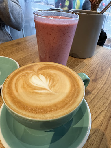 Really nice and cosy place. The sofas are very comfortable. Cash only but the prices are reasonable. The decor, like the furniture is comfortable and not offensive while not being too boring much like the music selection. Service was very nice and friendly but with my server at least, a little German was a necessity. I will definitely go back as overall the place left a lovely impression. Did not get a chance to delve into the menu much, I would be interested to see what they do in the way of food. I did see some cake selections on offer however. It's location is close to the U-bahn so if you're looking for a nice place to share a drink and conversion I definitely recommend it if you're in the area or passing through. If you are a coffee snob this place might not set your world on fire but it's overall ambience should leave you in...