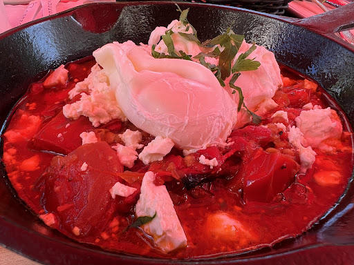 Two days later my wife and I wanted breakfast for my birthday so I took her here. I ordered what was described as a typical Israeli breakfast and it was a perfect 10/10. My wife loved her food and the restaurant as well. She went inside to use the restroom before we left and saw they had amazing cakes and a cool bar, so that might, she brought me back here after dinner for dessert.