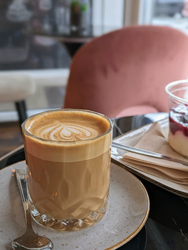Read moreDieses Cafe hat mich aus den Socken gehauen! Die Lage ist wirklich unglaublich, mitten im süßen Charlottenburg und ich hab mich vorallem in die Einrichtung verliebt. Die Inhaberin und der Service sind wirklich eine andere Liga an Gastfreundlich was ich so bist jetzt in Berlin leider viel zu selten erlebe. Bin begeistert! Wir hatten einen Iced Mango Matcha Latte und Iced Strawberry Matcha, fande beide sehr lecker und vorallem gute Qualität (bei Matcha ist das immer so eine Sache). Wir saßen diesmal draußen in der Sonne aber ich werde aufjedenfall diesen Spot als Study Ort makieren, einfach perfekt für Uni...