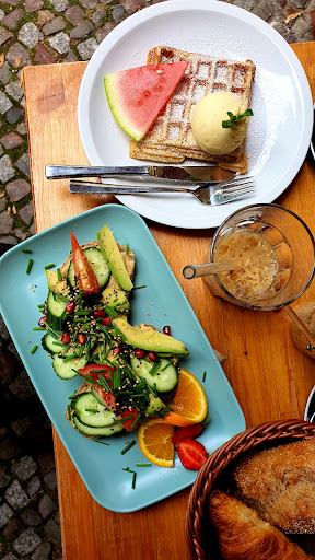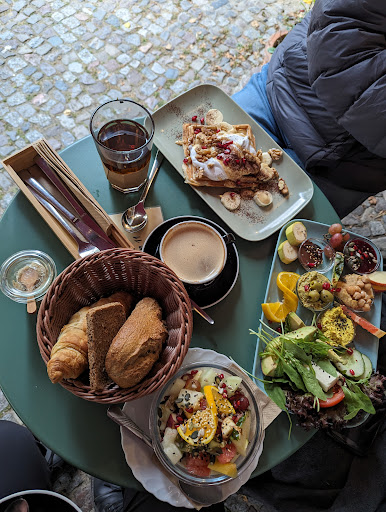 Read moreI love this place! The vegan croissants are superb - flaky, light and not filled with anything - just pure perfection! The coffee is excellent too. They have affordable small breakfasts for vegans, like waffles with fresh whipped cream, ice cream and berries. They also have sandwiches with spreads under 5 Euros. They have a nice selection of platters for roughly 10 Euros with the usual German-vegetarian flair. They also do smoothies and and simple cakes/tartes and pastries, which I believe are mostly if not all vegan. They cater heavily to vegans, but it is not a vegan pace - they serve cheese and they sell jars of honey. It's mostly a breakfast and brunch type of place, so they're not...