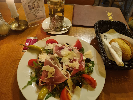 Read moreHatte 2 Stunden vor einem Termin um die Ecke totzuschlagen und konnte dort sehr angenehm mit Blick auf grüne Bäume sitzen und essen. Gnocchi mit Tomatensauce und Mozzarella von der Wochenkarte waren lecker und fair bepreist. Die Weißweinschorle etwas dünn gemischt, aber das war tagsüber ganz gut so und Preis-Leistung ebenfalls passend. Eiskaffee wurde sehr ansprechend serviert. Es gibt auch eine Toilette, wo man sich frisch machen kann. Anders als sonst überall in der Hauptstadt dieses Noch-Industriestaats kann man tatsächlich mit EC zahlen, zumindest ab 15€. Volle...