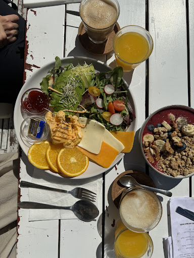 We came here to sit outside in the sun and have brunch, like many other people. The menu looked really good too. Unfortunately the quality of the food was a big negative surprise, especially when you think about the generally high quality of food in Berlin. The bread seemed to be just some supermarket, prepackaged slices and so was the cheese. The granola on our bowl seemed to just be some ordinary supermarket granola and the açaí bowl was really liquid. On top the toilet was awful. The staff was really trying hard to keep everything running but there was clearly a lot of chaos and confusion.
