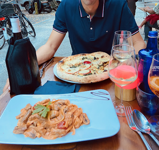 Went there to spend evening with friends. At first, very lovely authentic place. Ufortunately, only 2 stars: 3 times the restaurant entered unpleasant smelling homeless guys, selling newspapers and flowers, at first I thought they entered maybe because the staff was busy and they slipped in, but then after the first one came another and another, and staff did nothing. That's definitely minus vibe. The food was ok, nothing special, but pricey. I ordered the Caeser salad which was just salad leaves, parmesan and sauce for 19€ plus additional almost 10 euros for shrimps (unpilled from the shells!). There were even no cherry tomatoes in salad! Pizzas all looked empty, we ordered 4 pizzas, the one with shrimps had only 4 shrimps on it, Karl! That's very funny. They served food after AN HOUR of waiting, okay for pizzas, but why not bring the salad with drinks if it is so simple in ingredients, I don't understand. Overall, not...