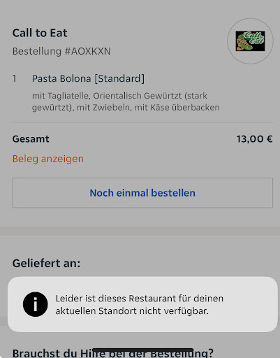 Read moreDas Fingerfood, ausser die chickennuggets, welche kleine Flache Steine darstellten und die man ueber das Wasser hätte hüpfen lassen können, war gut. Ach ja und die pommes wurden zusammengequetscht in einer pappschachtel matschig und ungesalzen geliefert. Aber wer bestellt auch pommes xp schuld eigene. Pizza heute bestellt ist gar nicht mal so gut. Brokkoli auflauf beim letzten mal bestellt ( gebe jedem laden zwei Chancen) solala. nicht ganz gar, etwas lieblos, Gorgonzola kam nur bedingt durch . Und heute hatte der Lieferant wohl kein telefon um mitzuteilen, dass das gewünschte Eis nicht vorrätig ist. Dann sollte man sich eins aussuchen, von denen die er einfach mitgebracht hat. Lach sehr geil. Keine Ahnung was ich dazu sagen soll. Bin enttäuscht, da das fingerfood beim letzten mal qualitativ gut...