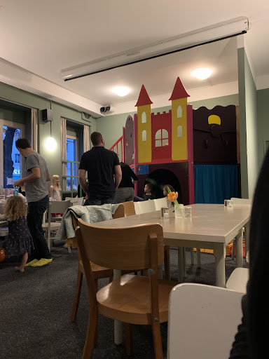 Geschrieben im November 2022: Wir waren das erste Mal hier. Draußen gab es ein paar Tische. Wir saßen erst allein im Spielzimmer. Hier gibt es 5 Tische, mehrere Kinderstühle und ein Spielschloss mit Kuscheltieren und Bausteinen. Die Bedienung war sehr freundlich und bemüht. Es dauerte allerdings etwas bis die Karten kamen, bis die Bestellung aufgenommen wurde und bis die Getränke und das Essen kam. Es gibt eine Kinderkarte. Der Milchreis wurde mit Freude gegessen, obwohl die Portion etwas klein ausfiel. Das Kinderschnitzel schmeckte auch. Das Gemüse kam nicht gut an. Der Cheddar Burger war ok. Die Schupfnudeln waren auch ok, leider war ein langes Haar im Essen. Eis war gut. Die Waffel war ok. Die Kinder konnten spielen, die Atmosphäre ist ungezwungen. Die Preise sind in Ordnung und im Vergleich zu anderen Restaurants preiswert. Wir entdeckten dann noch Werbung fürs Puppentheater auf dem Bügelbrett und blieben. Das Stück war wirklich schön und so war es ein gelungener Mittagsausflug. Parkplätze gibt es in den angrenzenden Straßen. S Bahn ist gleich dort und U Bahn ein paar Minuten zu Fuß zu erreichen. Wir fanden es irgendwie sympathisch, allerdings hatten wir das Gefühl, dass hier mehr draus gemacht werden könnte. Wir kommen auf jeden Fall wieder zum Theater. Im März 2023 kann ich sagen, dass der Service sich sehr verbessert hat, auch wenn manches Mal due Freundlichkeit etwas fehlt. Die Milchshakes und Waffeln sind lecker. Wir sind gern zum Kaffeetrinken und...
