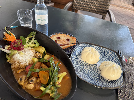 Read moreDie zwei Sterne sind alleine für das Ambiente, die Deko und das Essen an sich. Denn die Bedienung hat schlichtweg versagt. Sie konnte fast kein Deutsch und hat somit uns, und wir sie, kaum verstanden. Als wir das erste Mal da waren, war das genauso. Die Bedienung hatte selber keine Ahnung davon was in den Gerichten selbst war und in der Karte waren viele Dinge nicht gekennzeichnet, zum Beispiel Gluten im Seitan (Seitan an sich besteht nur aus Gluten). Ich finde es nicht akzeptabel, dass sie das nicht wusste. Auch sonst sind in der Karte viele Rechtschreib- und vor allen Dingen Grammatikfehler. Mal ehrlich, es ist nicht schwer, sich das mal richtig übersetzen zu lassen. Im Gebäude des Restaurants wurde zudem gebaut und das hat gestört. Dieses Mal hatten wir reserviert für einen 6er Tisch, doch als wir ankamen, war dieser von anderen Menschen belegt. Diese hatten (laut der Bedienung) gesagt, sie würden nur eine Stunde bleiben und wären vor unserem Eintreffen wieder weg. Als Kellnerin sollte man wissen, dass die meisten Gäste länger als nur eine Stunde dort sind. Für diesen Vorfall haben wir alle ein Glas Weißwein als Entschädigung erhalten. Nachdem wir dann an den anderen Tisch umziehen konnten und bestellt hatten (die Bedienung hat alle Extrawünsche entgegen genommen), kam dann eines der Essen nicht, welches wir bestellt hatten. Und später als wir auch noch Dessert wollten, haben sie uns erst das Falsche gebracht (danach aber durch das richtige ersetzt). Als wir bezahlt haben, war das nicht gebrachte Essen dennoch auf der Beleg (was dann aber per langem Reden mündlich gelöst wurde) und getrennt konnten wir auch nicht zahlen. Wenn die Technik nicht funktioniert, kann man doch immerhin rechnen, aber nein, das mussten wir...