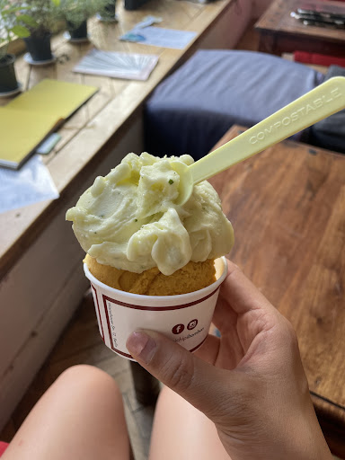 Read moreOh wow wow wow what a pleasant surprise! I got one scoop of sweet potato and one scoop of pineapple and it was so delicious but both very different. The pineapple was very refreshing on a warm Berlin day, there was herbs in it that gives it a nice balance. The sweet potato ice cream makes my mouth water just thinking about it…. You can tell it’s made from real ingredients and makes you wonder why there isn’t more sweet potato ice cream. When I was about to leave, I got to talk with the owner, he was very friendly and told me the concepts for the flavors. You can really taste the love in the ice cream....