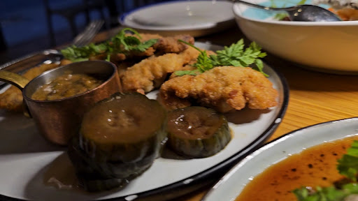 Wir bestellten 5 kleine Tapasgerichte. Das Tartar mit Birne und Kimchi. Fazit: Erschreckend wenig. Keine Birne und überdominanter Kimchi. Sodass das vermeintlich hervorragende Fleisch nicht zu schmecken war. Thunfischacarpaccio mit Trüffel war enttäuschend - schade um den Trüffel. Mini Schnitzel - leider fad, kein Salz. Die Ingredenzien passten nicht zusammen. Sehr gut war das Ochsenbäckchen Und herraussragend der Heilbutt. Wirklich!