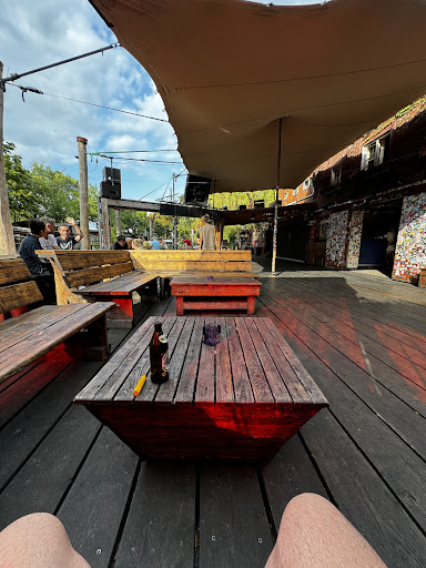 I went for an event of Half Baked but I was strongly disappointed by the weak quality of the sound system. You could barely hear the music. The only chance for you to do so was to snuggle in the tiny indoor area where you could barely have space to move or breathe. The atmosphere of the place is def of one of a bar and not a club or place to enjoy music. The location is pretty nice, along a tiny river. And the design of the place looked nice too! But I couldnt stay more than 10 mins there. I also entered the place in the most awful way possible. The gate guy, a skinny wanna be tough dude, spoke only in German and he mocked me for not understanding what he was saying, making other people behind me laugh with him. After he figured I dont know German, he started to say repeatedly in an insulting way 'hallo?! hallo?!' and then he pointed towards the cashier. Awful welcoming!! It made me laugh thinking how much of w cool and dull dude he thinks he is when he is working for a 8 euros entrance. Completely disgusted! I had serious thoughts right in that moment to not even pay for the entrance and just live. But because I wanted to check the music from Half Baked and had a little curiosity to see how the place looks from inside, I forced myself up to shut up and try to check the vibe. I went inside. Ordered a 7.5 euros Aperol Spritz. Dealt with 2 unrequested and uncomfortable acts of attention from 2 different men. Tried to pay attention to the music while having my drink. But it was hard to enjoy. So I left. Never in my life spent such a short time in a venue where you are supposed to have fun. lol!! Never again, sorry!!