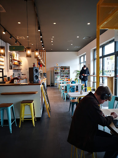 This is a very nice, laptop friendly, cafes. Cakes and other sweets are made in house and the coffee is not bad either. The wifi is very fast (150Mbs) and in the morning is also quiet. I actually went there to work a couple of time and I will definitely do it again.