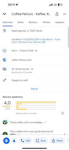 If you’re looking for the perfect cup of coffee, this café is an absolute must-visit. The drinks are consistently excellent, and the atmosphere is chic yet cozy, and welcoming, just what you need whether you’re starting your day or taking a break.