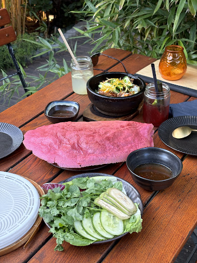Almost every single dish here is somehow special, a twist on Vietnamese dishes you know from other restaurants in Berlin. My favorites: Banh Bao appetizers, Hot Rabbit, and the "Klöße." But honestly, mostly everything is great. Personally found the mushroom appetizer to be bland, and the Bahn Xeo (the rice crepes) to be like the spring rolls I know from everywhere else (so--good, but not special like most of the other dishes here.) The chocolate dessert is decadent and perfect for sharing; easily 3 or 4 people could share it because of just how rich it is. A great place for people who can't imagine how a meal without meat can taste good (everything here is vegetarian or vegan) 😆