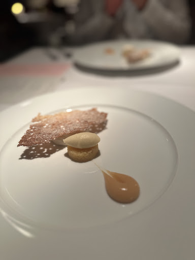 We had an amazing night, but there are some minor details I think would be an easy fix for a substantially better experience: I took sparkling, and my partner still water. I got this small metal slab under my glass so that the waiter could tell who wanted sparkling. However, it stuck to my glass multiple times which once made me spill water. Just not a nice experience. There should be a small bread plate. The bread is so good that you want to eat it in between meals - or just not place it on the plate etc. There are crumbs on the table and once again - just not a nice experience. The water was €7.5/person... I really think they should include this (rise prices if necessary!) as it is just not a nice gesture. The wine is just too cold. There can be no debating of this fact! Would like some more info about the wine pairing Would like more info about sourcing and preparation...