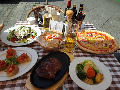 Bruschetta war sehr lecker und die Pizzen waren auch lecker, Pizza Rand war nicht zu hart auch nicht zu weich, der Boden war Hauch dünn und trotzdem gut belegt, schärfere Messer und größere Teller für die Pizza wären gut, aber war okay alles.