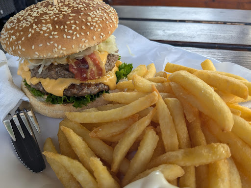 Casual eatery with outdoor seating, offering staples including curries & burgers.
