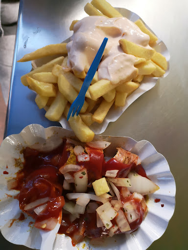 Auf Grund der vielen positiven Bewertungen, wollten wir hier nun auch mal etwas probieren. Geschmäcker sind verschieden, aber unserer ist das auf keinen Fall. Die Pommes hatten einen ekelhaften Geschmack, ich würde es gerne anders beschreiben weil das so gemein ist, aber genau so war es. Für meinen Geschmack hätten sie auch länger frittieren können, waren noch recht roh/fest. Der Mayo ist etwas beigemischt damit sie rosa ist. Auch nicht lecker und von der Konsistenz zu flüssig. Die Wurst und Boulette unterer Durchschnitt, ziemlich fest und ohne viel Geschmack. Der Ketchup hatte einen merkwürdigen Nachgeschmack, ein bisschen wie Weihnachten. Das Brötchen war Stein hart, weil zu lang auf dem Grill. Alles in allem, waren nur die scharfen Zwiebeln gut, wenn auch viel zu groß geschnitten. Das ist nichts, wir...